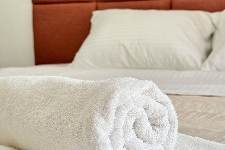 Новые матрасы и качественное постельное белье, полотенца банные.
