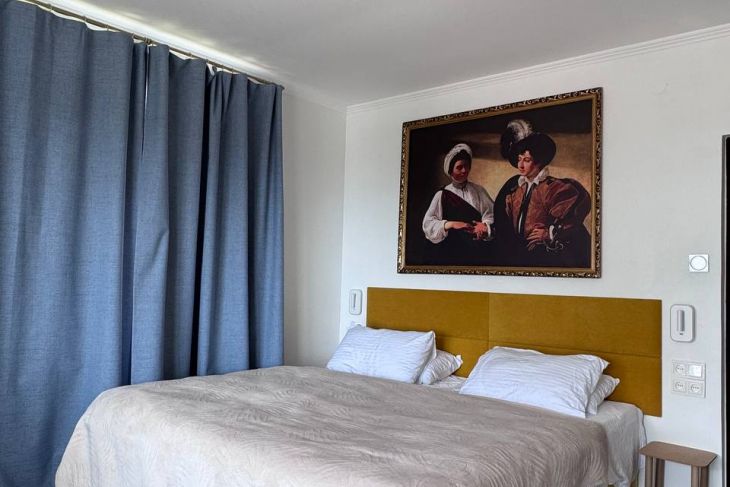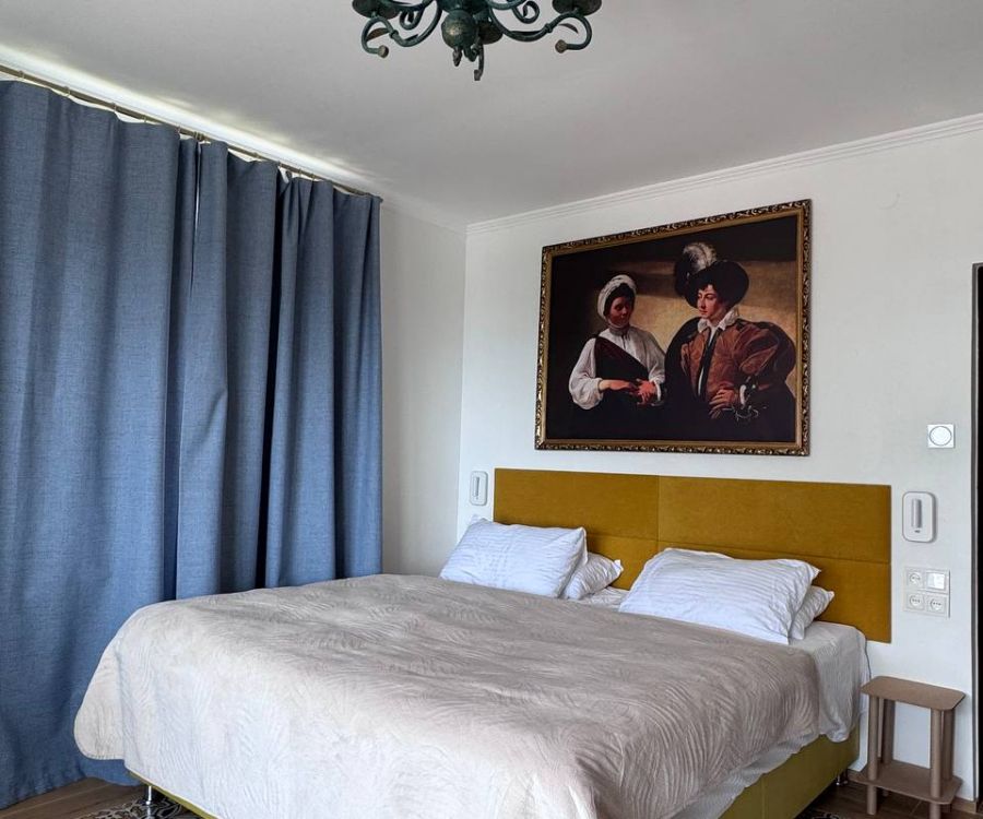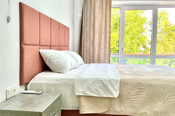 - Блэкаут-шторы, сатиновое белье, мягкие подушки;