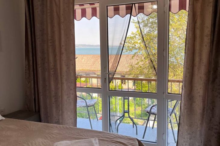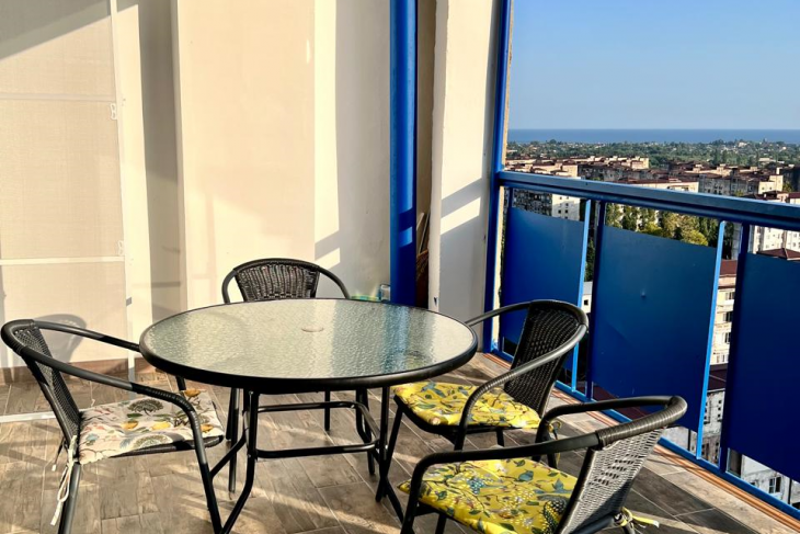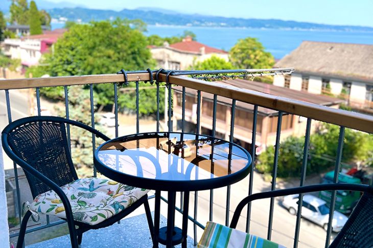 Балкон с видом на Сухумскую бухту и тент-маркизой