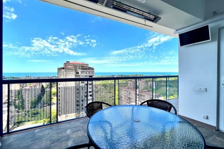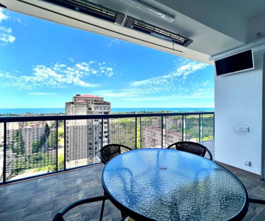 - Панорамная терраса с видом на море, обеденной зоной, газовым грилем и обогревателями, теплым полом